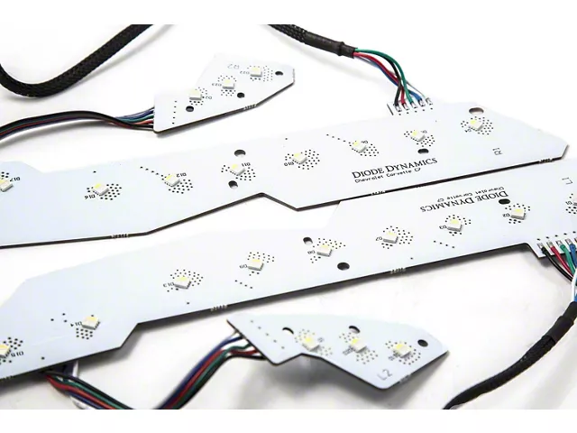 Description. Full RGBW. Full multicolor, with no sacrifice. Convert the white LED accents inside your Corvette's headlights to illuminate in any color for a unique, custom look. Unlike other RGB products on the market that produce a mixed white color, our LED boards are RGBW, with independent White LEDs. After you have fun with colors, just select True White for a crisp, clean white output for everyday use.