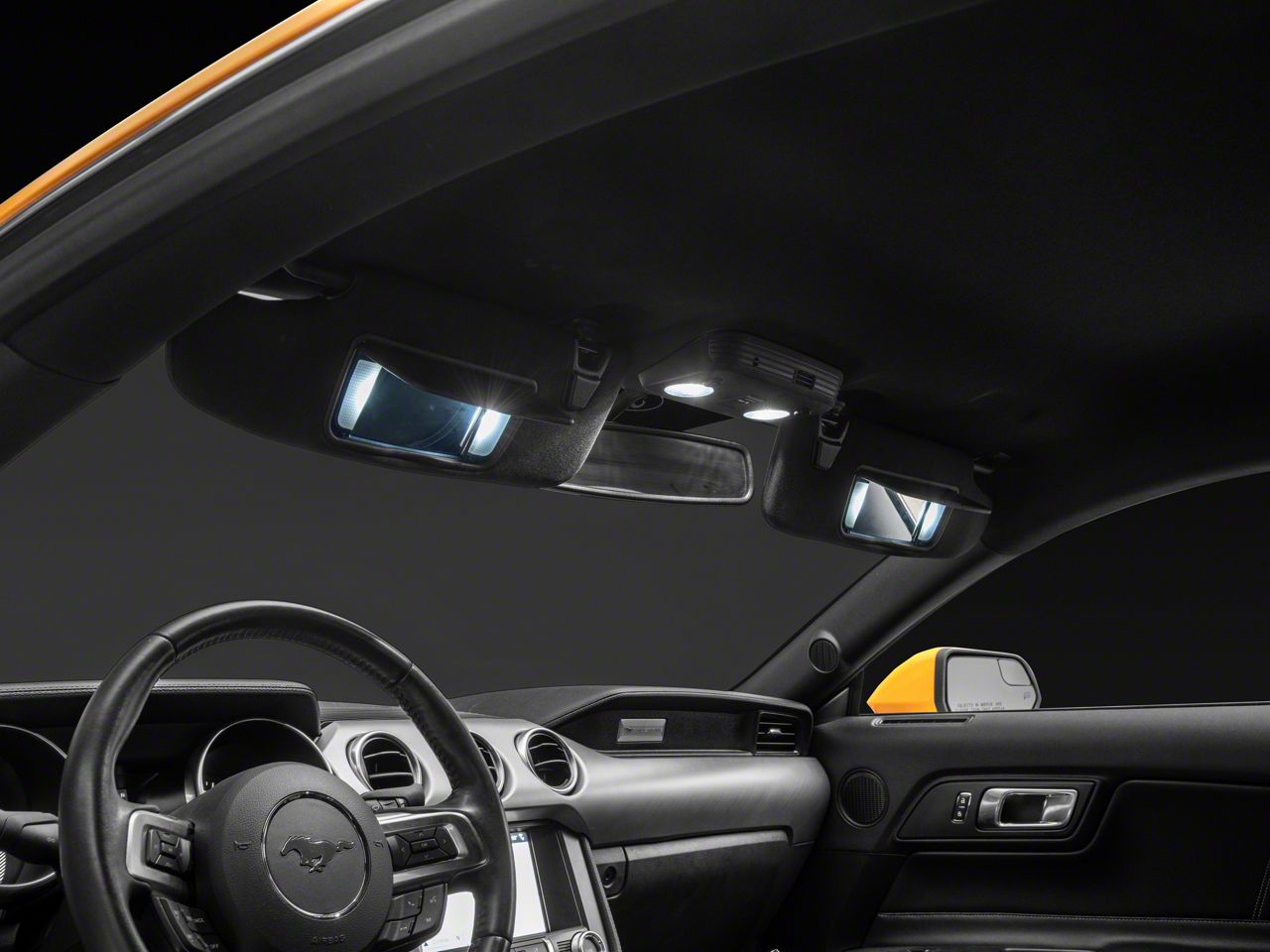 Replaces Factory Bulbs with High-Quality LEDs. If your Mustang’s factory incandescent bulbs aren’t shedding enough light in the cabin, now’s a good time to replace them with this Stage 2 LED kit. The lights in this upgrade boast 340 lumens and project a bright cool white light to help further illuminate your vehicle’s interior.