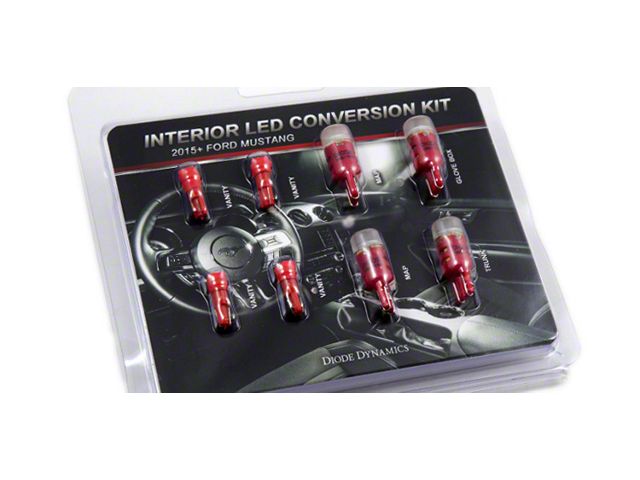 Application. The Diode Dynamics Stage 2 LED Interior Lighting Kit with red light output is designed to fit all 2015-2017 Ford Mustang models.