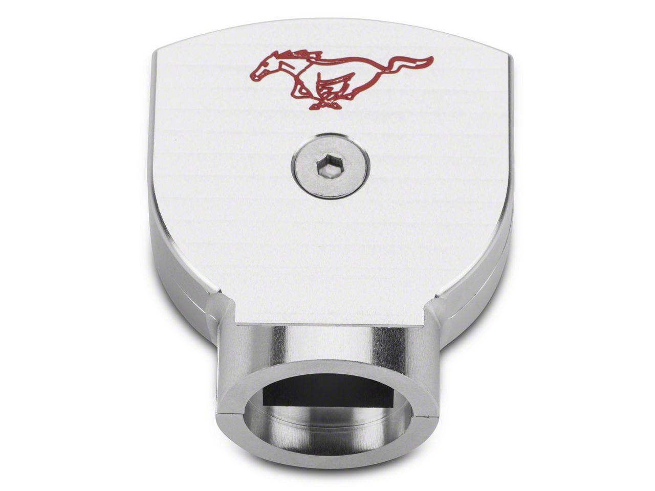 Impressive Styling. Give your Mustang a new look and cover up the bright factory dipstick handle by upgrading with this billet aluminum Scott Drake Oil Dipstick Handle Cover with a Running Pony Logo. This Dipstick Cover is ideal for those seeking more than the factory matte black finish has to offer. It will enhance the look of your engine with a metallic flair as well as a fully licensed pony logo in red. This cover installs easily and is perfect for use alongside other aluminum engine accessories to give your Mustang a show worthy appearance under the hood.