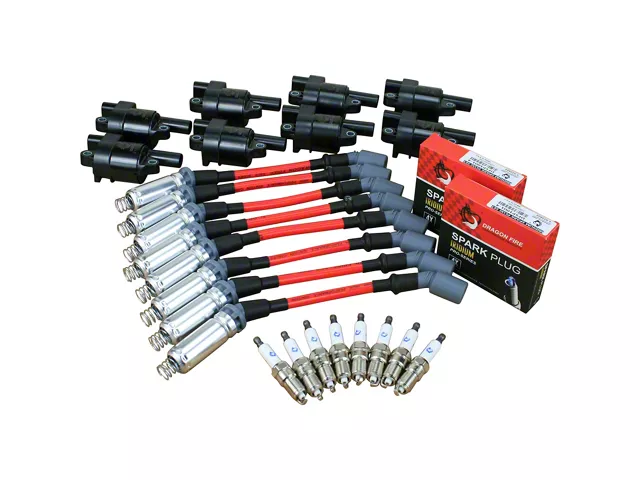 Performance and Reliability. Elevate your vehicle's performance with the Dragon Fire Performance Ignition Tune-Up Kit in sleek black. This comprehensive kit features top-of-the-line Iridium Spark Plugs and high-output Ignition Coils, engineered to deliver up to 15 percent more energy for unparalleled engine efficiency. With a universal 10mm thread size, these components promise OEM-grade durability and a perfect direct factory replacement.