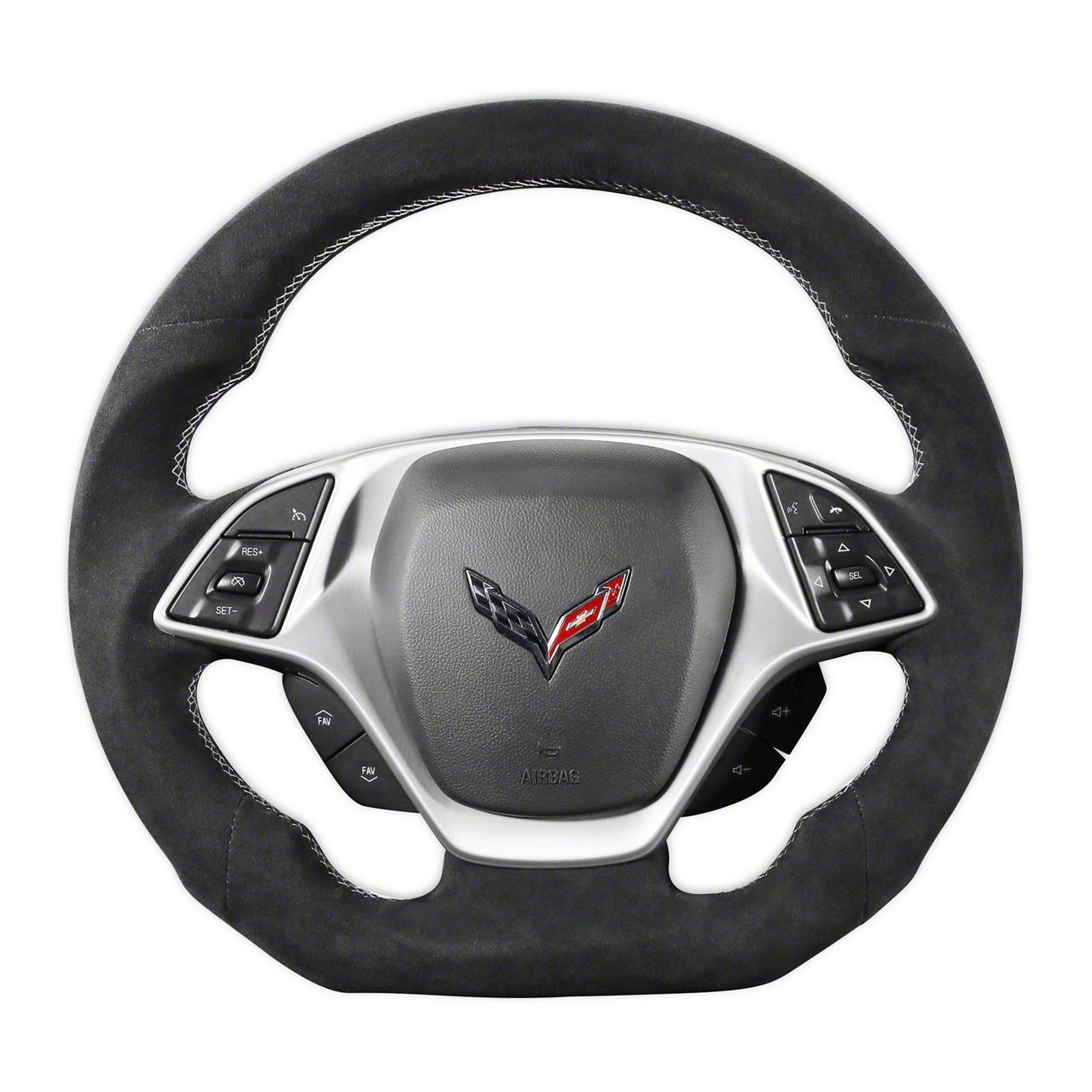 Application. The Drake Muscle Cars Steering Wheel; Carbon Fiber with Leather Grips fits all 2014-2017 Chevrolet Corvette C7 models.