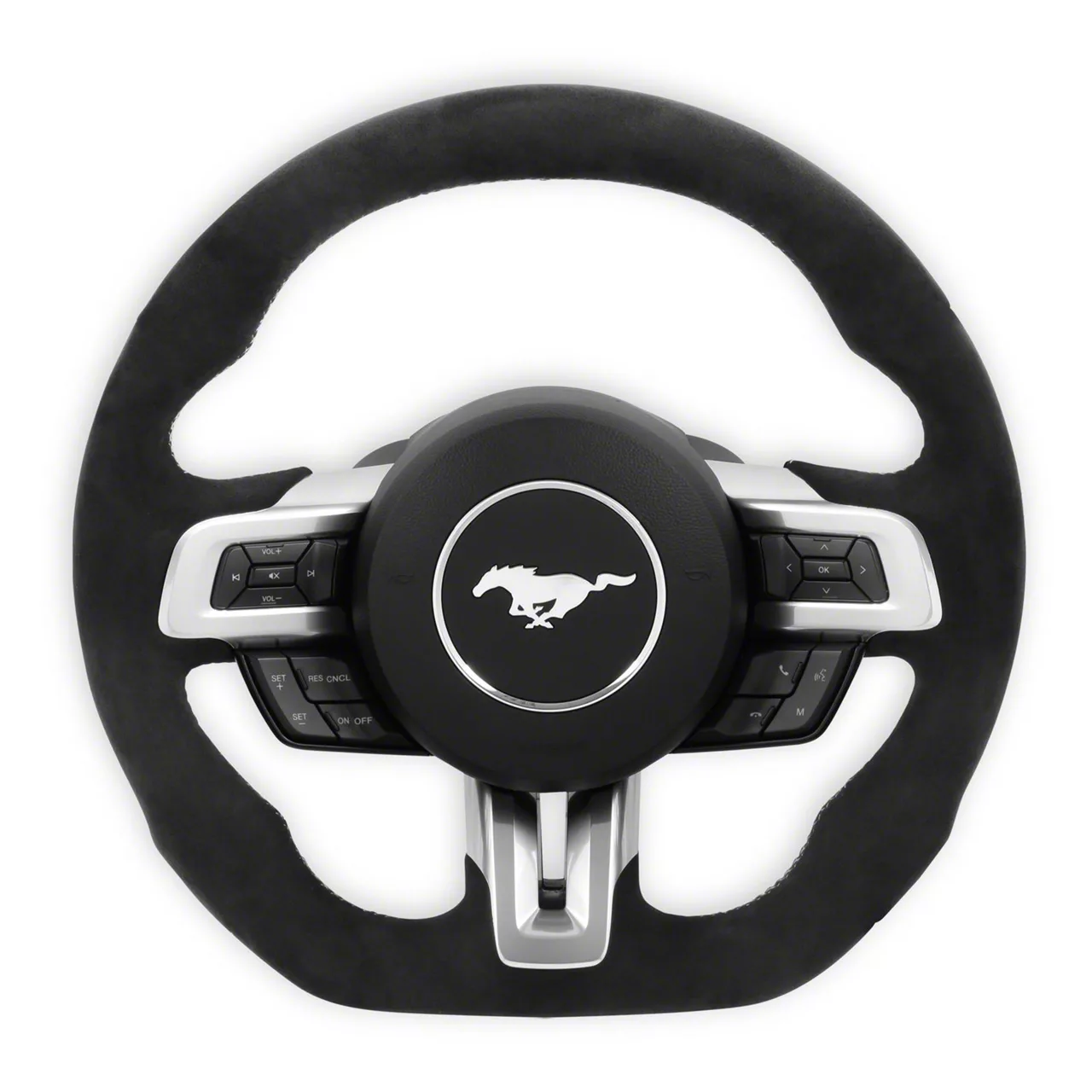 Comfort at Your Finger Tips. This Drake Muscle Cars Steering Wheel; Alcantara is an excellent addition to your Mustang. Designed brilliantly to provide maximum comfort on the long, or intense rides, this steering wheel looks great as well.
