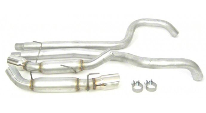 Strong Sound and Styling. Get the most out of your Mustang and tear the track with this Dynomax Race Bullet Cat-Back Exhaust enhancing air flow performance. Expertly welded and formed to provide a near seamless structure that can withstand heat and impact while delivering strong growl and uninhibited airflow, this is the kit for those looking to drive in classic muscle car fashion.