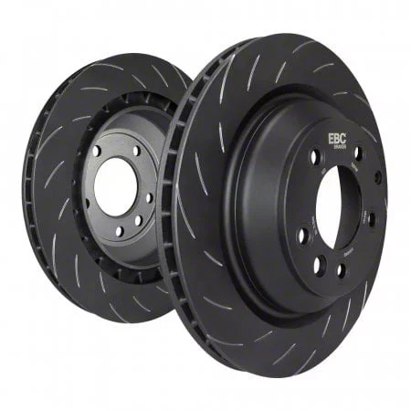 High-Carbon Alloy Composition. Constructed from a high-carbon iron alloy, the EBC Brakes SG Slotted Rotors; Rear Pair delivers increased strength and better heat resistance. This material choice contributes to a quieter braking experience and enhanced durability under the demanding forces of high-performance braking systems.
