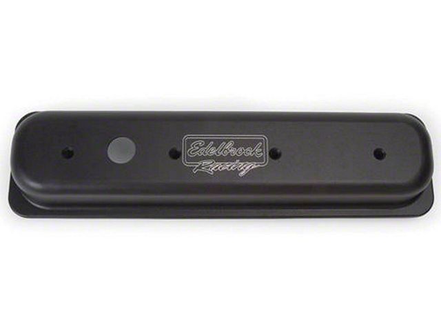 Description. Edelbrock part #41723 Victor Series Valve Covers are designed for Chevy 262-400 1986-95 with left breather hole (centerbolt) applications. Our Victor Series valve covers have a finely textured black powder coated finish for a pleasing and unique appearance. This is the same finish you'll find on our top-of-the-line Edelbrock/Musi 555 Crate Engine. These valve covers are manufactured from die-cast aluminum and machined with 1-1/4" breather hole. Overall height is measured from base to top at the highest point.