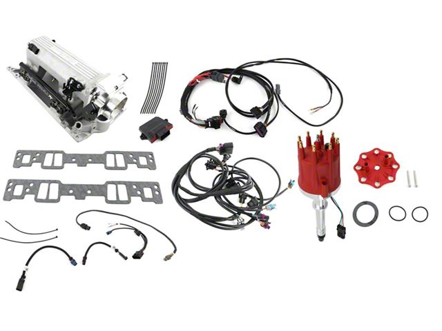 E-Tuner 4 App.Made for the Chevrolet Corvette C5, this Edelbrock Pro-Flo 4 EFI XT-Style Kit comes in a dark red and matte black finish. Built for use with small block Chevy engines with Vortec/E-Tec cylinder heads, this system includes an intake manifold, a plug-and-play distributor and wiring harness, and a self-learning ECU as well as 29 pounds per hour injectors capable of 450 horsepower with 58 PSI. This system can be controlled through the compatible Android or iOS E-Tuner 4 app for customized performance.