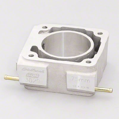 Edelbrock part #3829 is a 75mm 50-state street legal Mustang Throttle Body and EGR Plate for 1986-93 5.0L applications. This Edelbrock TB and EGR plate is designed to replace the stock unit when the 70mm air valve #3825 is used. It provides no performance gains without the matching air valve. This spacer is an exact replacement of the stock unit in fit and function. This application is ideal for use with our Performer 5.0/Performer RPM 5.0 intake manifolds and The Total Power Package. The 70mm gained 10HP over the stock throttle body.