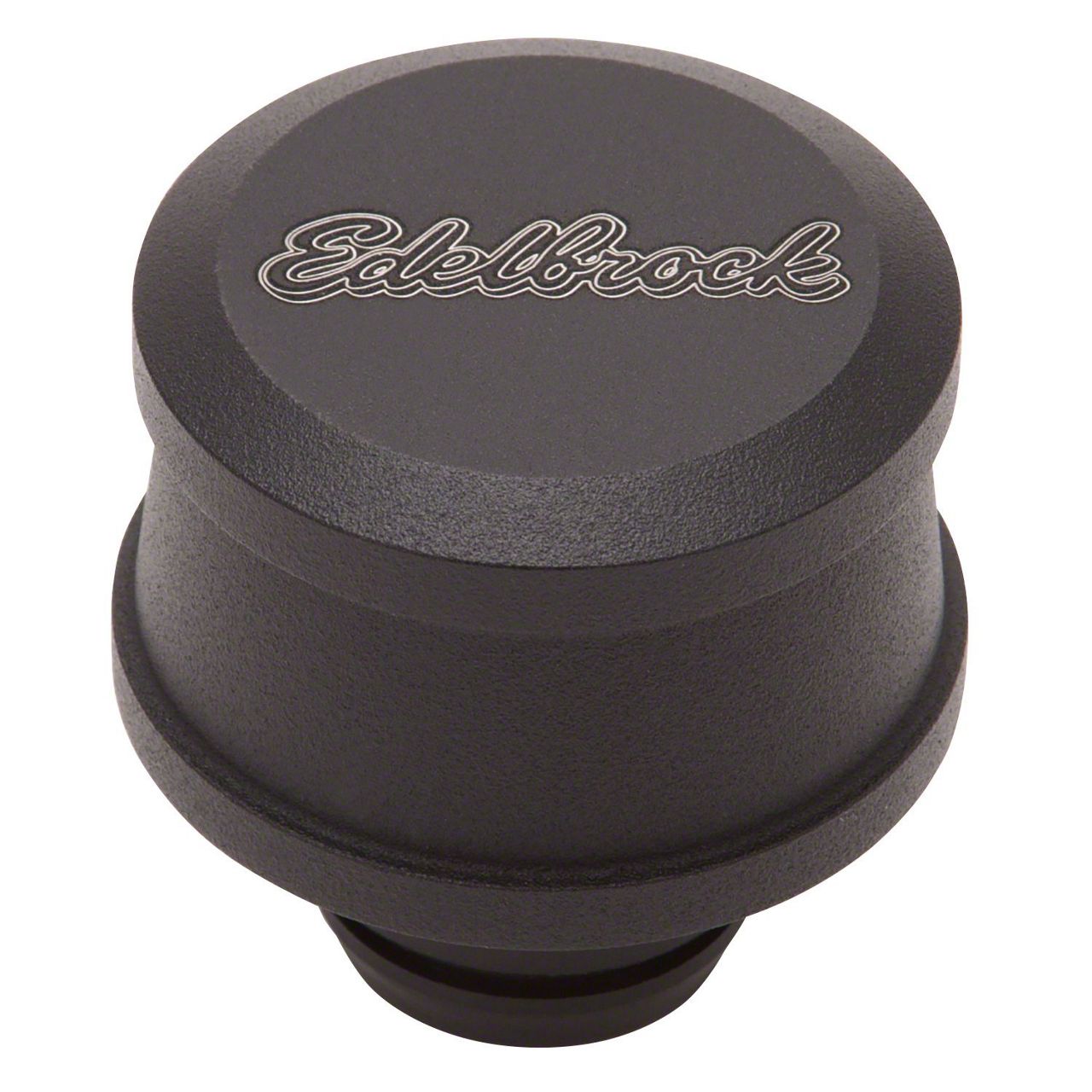 Clean Modern Design. Replace your vehicle's damaged or worn out breathers and protect your valves from debris and unregulated internal pressure with this Edelbrock Push-In Round Billet Aluminum Crankcase Breather; Black. Designed for weather and corrosion resistance, it is made from quality aluminum, treated to ward off rust and improve service life.