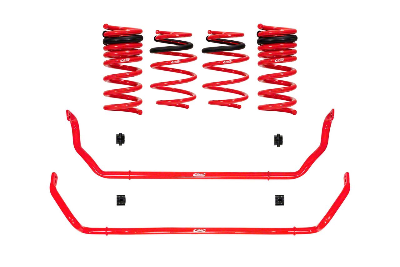 From the Box to the Track in No Time. The Eibach Sport-Plus Suspension Kit is made to take you from stock to professional grade suspension in no time flat. Eibach tests every kit for performance and to make sure it fits your sweet Mustang perfectly. Forget about welding, grinding, cutting and guessing.