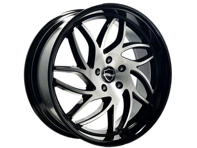 Elegant Danger Gloss Black Machine Center with Gloss Black Lip Wheel; 22x9.5: Redefine your vehicle's style with the Elegant Danger Gloss Black Machine Center with Gloss Black Lip Wheel. This wheel's elegant design and striking finish embody a blend of sophistication and boldness, perfectly complementing a wide array of vehicle aesthetics. Crafted from high-quality materials, it's a testament to durability and style.