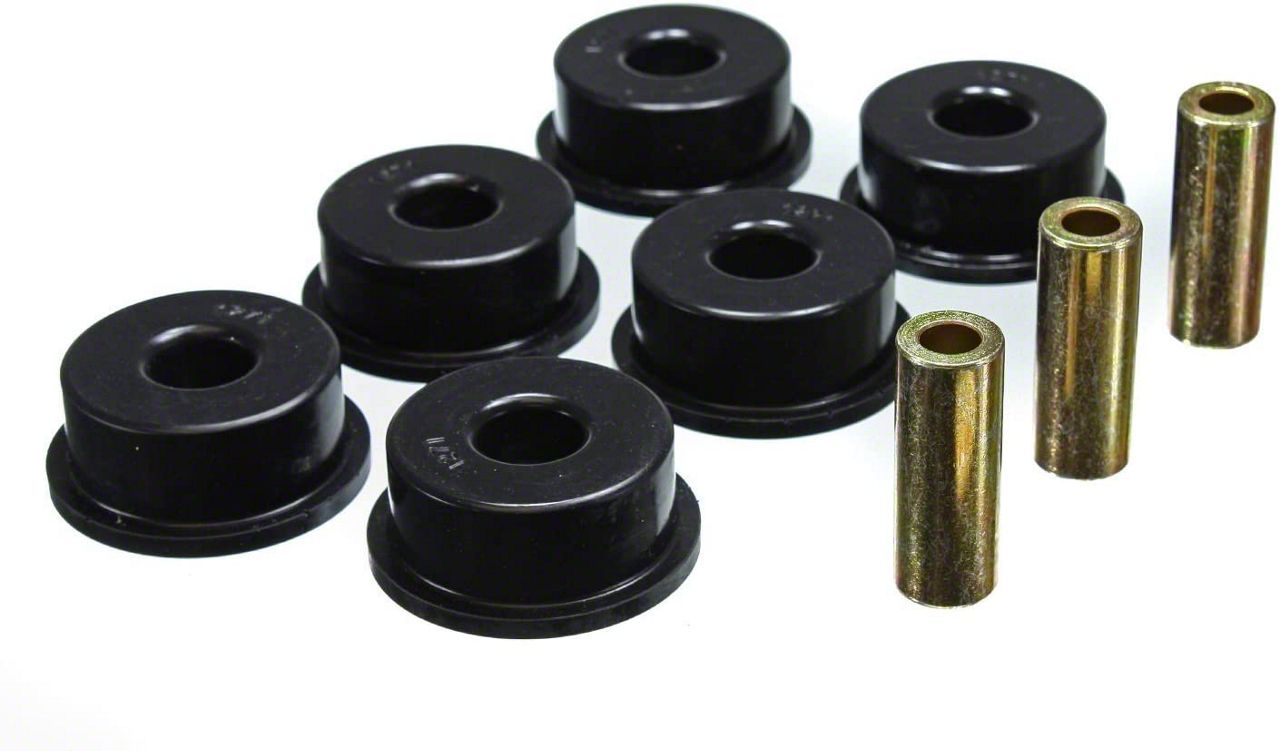 Construction and Appearance. Constructed from high-performance polyurethane in a sleek black color, this bushing set is more durable than traditional rubber bushings. It is engineered to withstand harsh undercar chemicals such as oils and coolants, as well as resist UV exposure and environmental toxins. The material’s robust nature makes it an ideal choice for demanding driving conditions, enhancing both longevity and reliability of the vehicle’s suspension system.