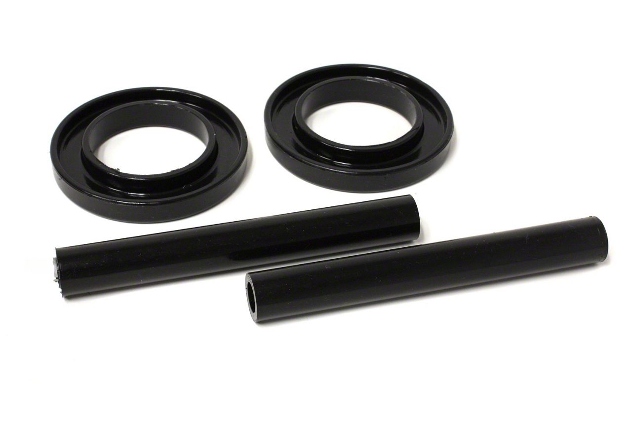 Front Coil Spring Isolators. The Front Coil Spring Isolators; Black are designed to reduce noise and harshness transmitted from the coil springs to the chassis. These isolators provide a smoother and quieter ride while preventing metal-to-metal contact in the suspension system. They serve as a durable replacement option that maintains the vehicle’s original ride feel.