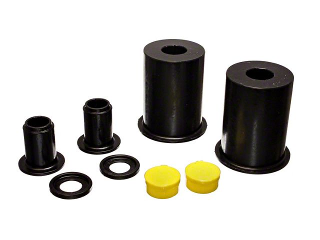 Black Polyurethane Bushings. These bushings consist of a performance polyurethane that provides superior resistance to chemical and elemental exposure. In addition, these bushings won’t degrade or warp like rubber bushings under extreme temperatures or pressures. Choose from stylish black or red bushings that best match your Mustang.Â