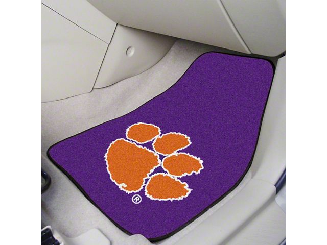 Description. Front Car Mats; 2-Pc Carpet Car Mat Set; Clemson University; 17"X27"