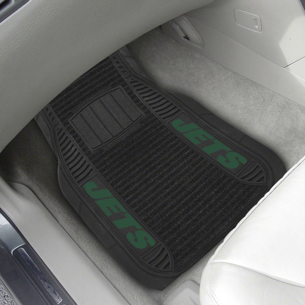 Description. Front Car Mats; 2-Pc Deluxe Car Mat Set; Nfl; New York Jets; 21"X27"