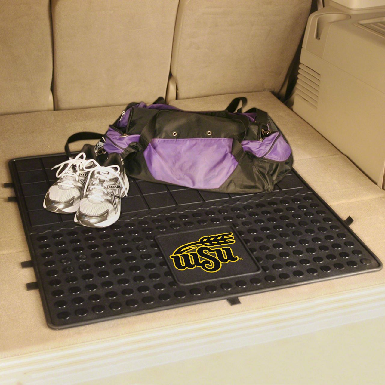 Description. Trunk Mats; Heavy Duty Vinyl Cargo Mat; Wichita State University; 31"X31"
