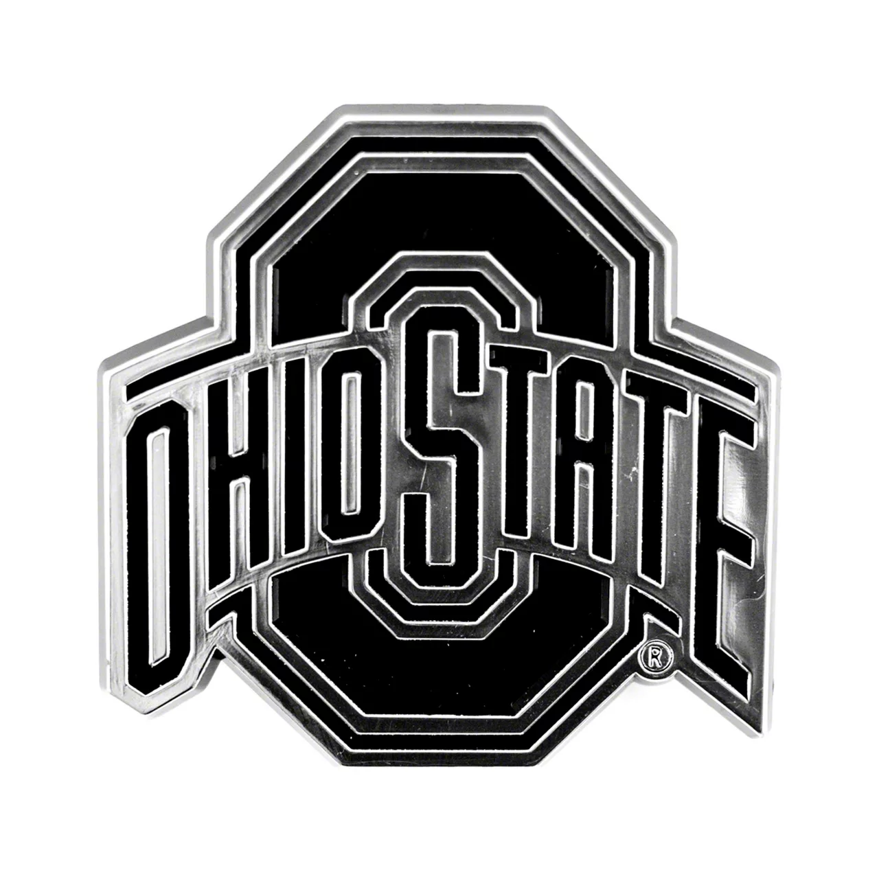 Manufacturing. This Ohio State University Molded Emblem was fabricated from resilient plastic with a chrome finish that looks remarkably classy. The emblem is UV-protected and measures in at roughly 3.25 inches x 3.25 inches.