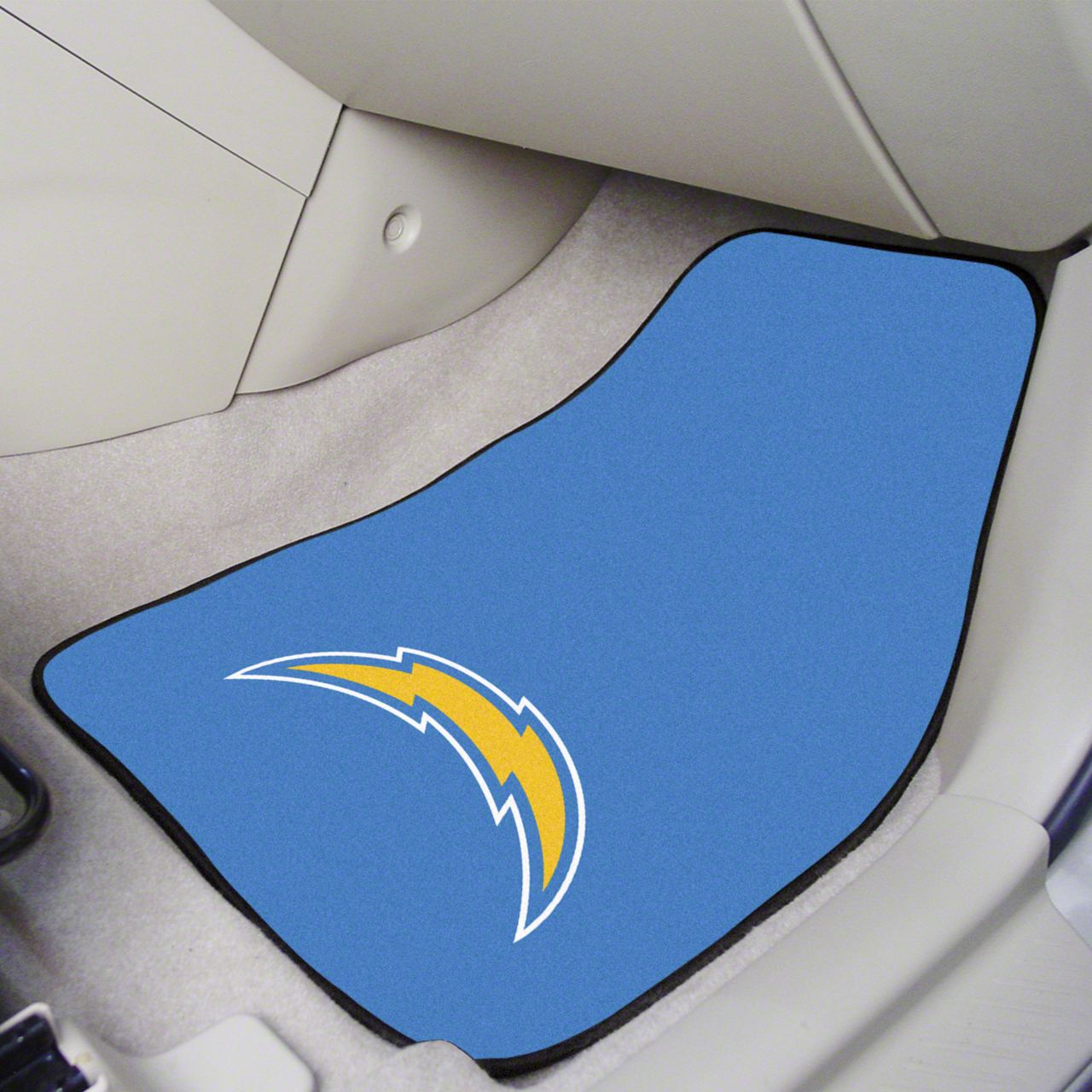 Description. Front Car Mats; 2-Pc Carpet Car Mat Set; Nfl; Los Angeles Chargers; 17"X27"