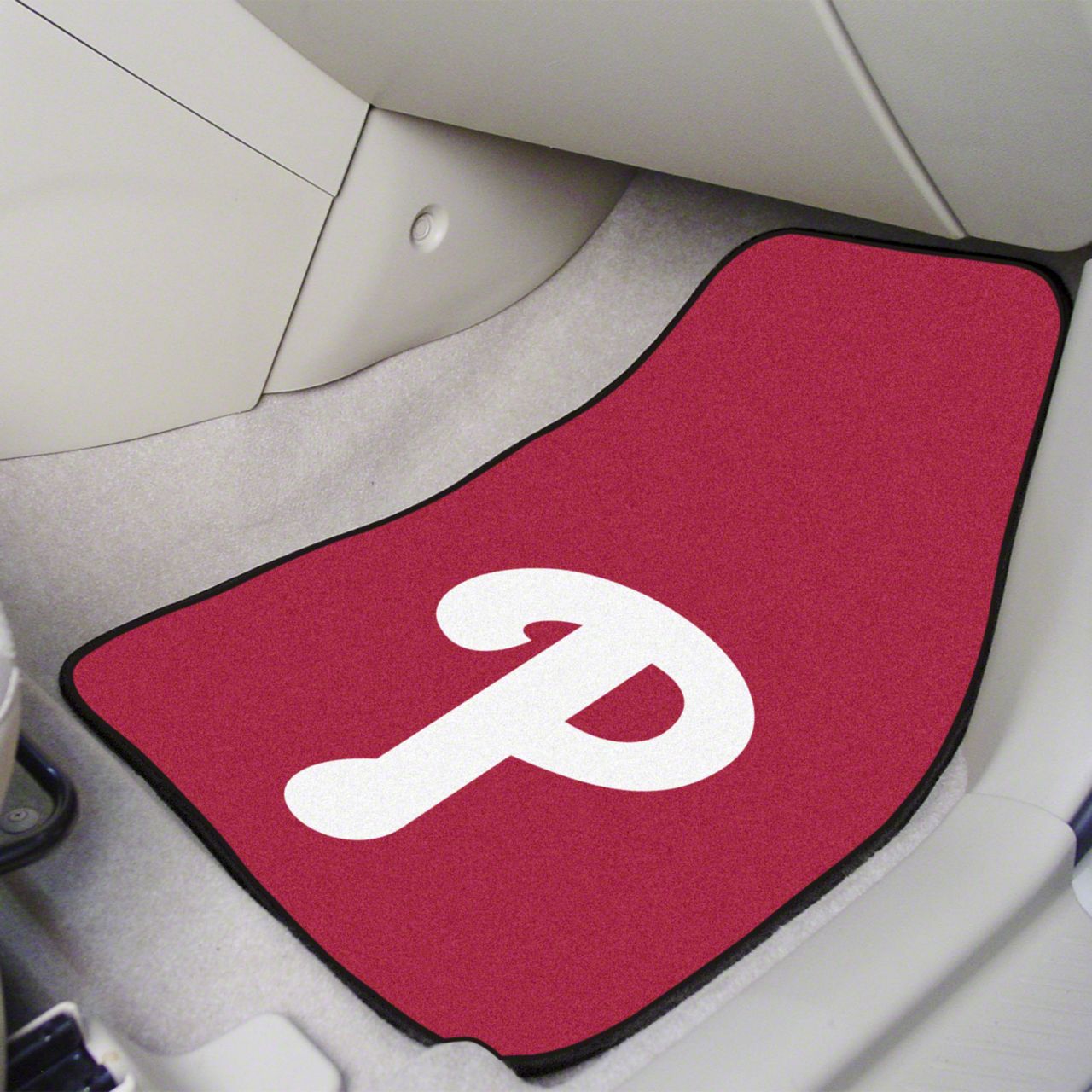 Description. Front Car Mats; 2-Pc Carpet Car Mat Set; Mlb; Philadelphia Phillies; 17"X27"