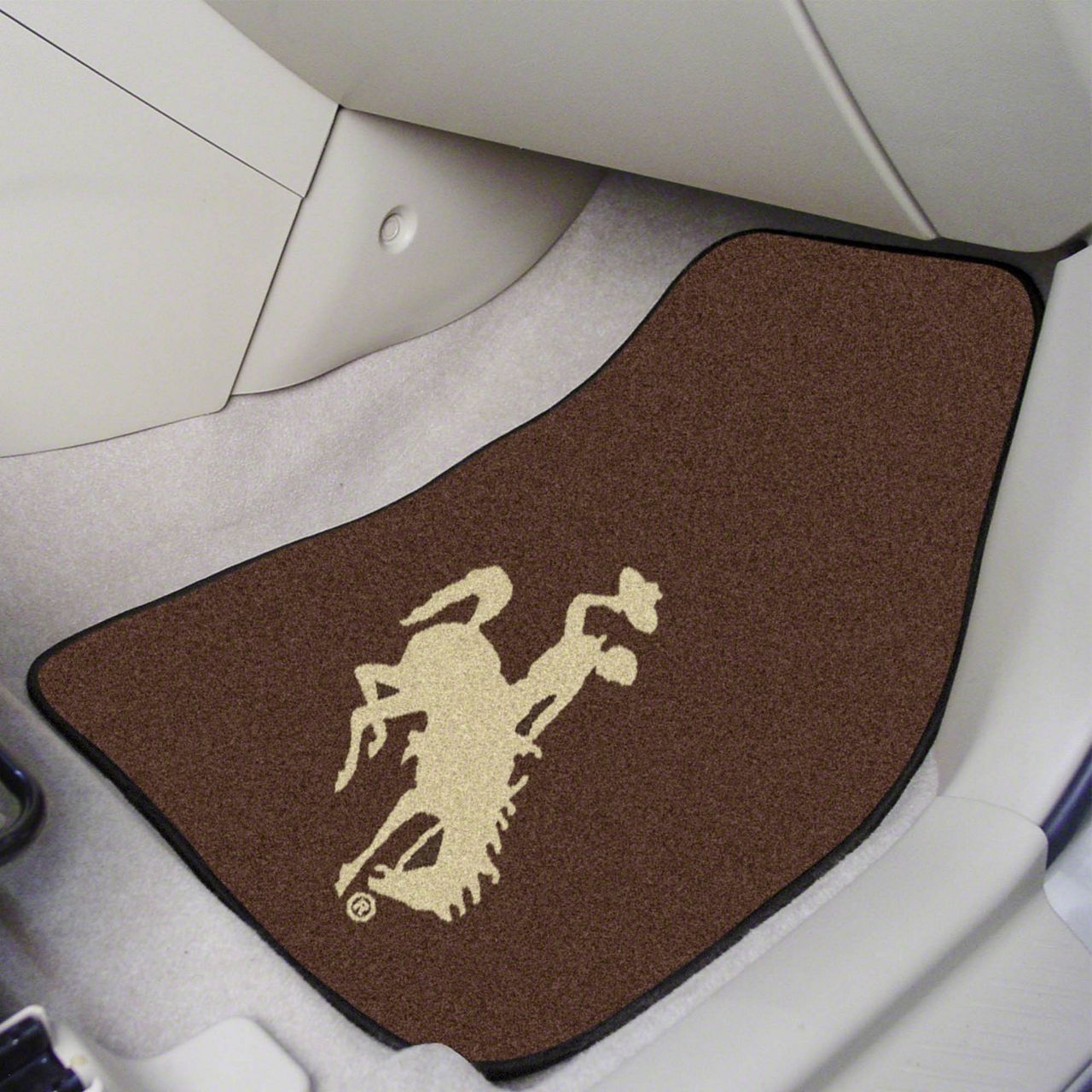 Description. Front Car Mats; 2-Pc Carpet Car Mat Set; University Of Wyoming; 17"X27"