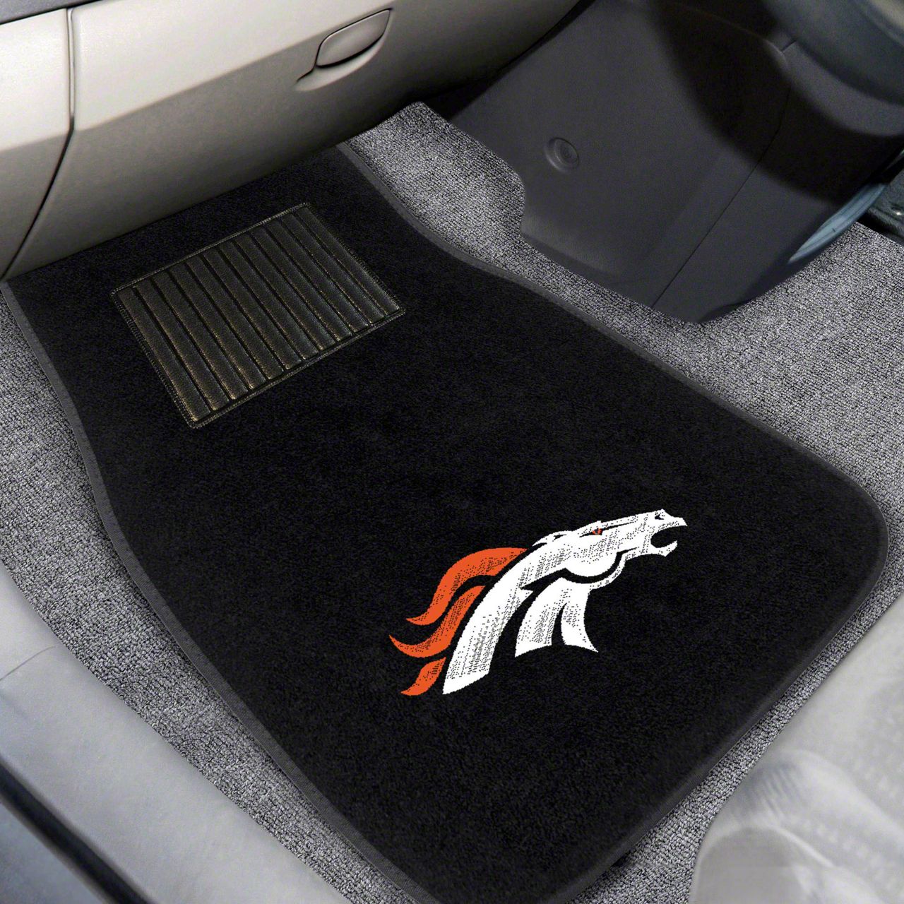 Description. Front Car Mats; 2-Pc Embroidered Car Mat Set; Nfl; Denver Broncos; 17"X25.5"