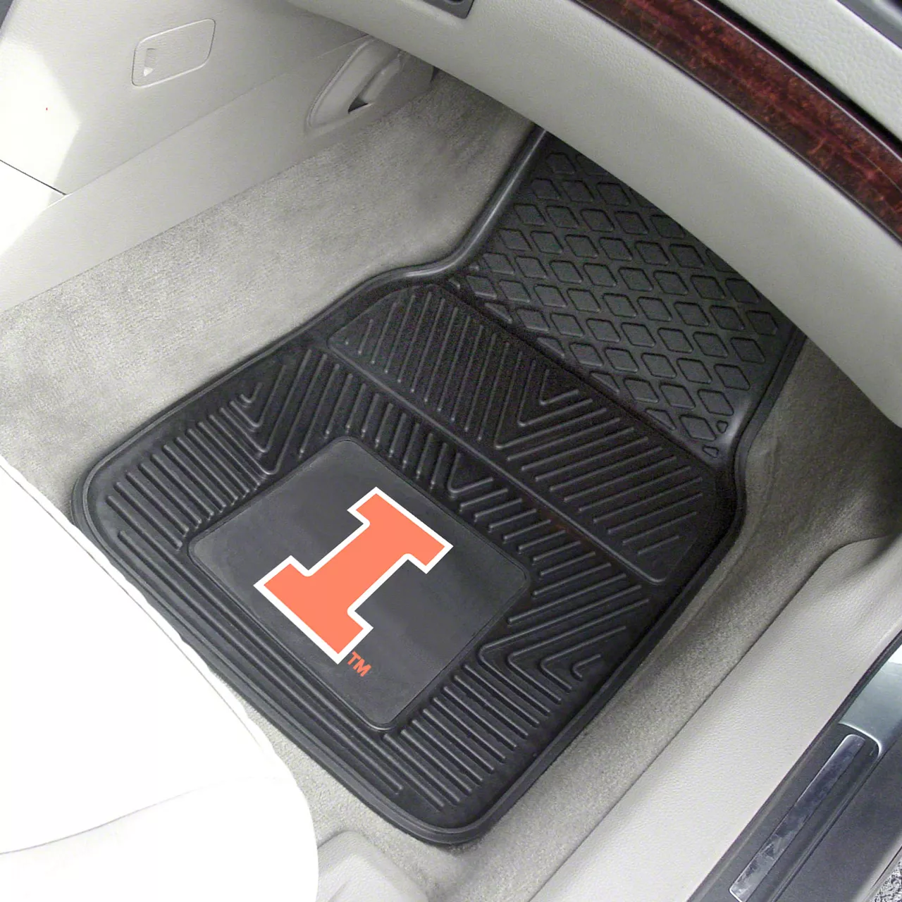 Vinyl Front Floor Mats with University of Illinois Logo; Black (Universal; Some Adaptation May Be Required)