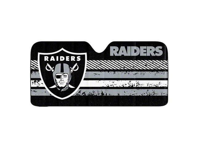 Application. This Windshield Sun Shade with Las Vegas Raiders Logo offers universal fitment.