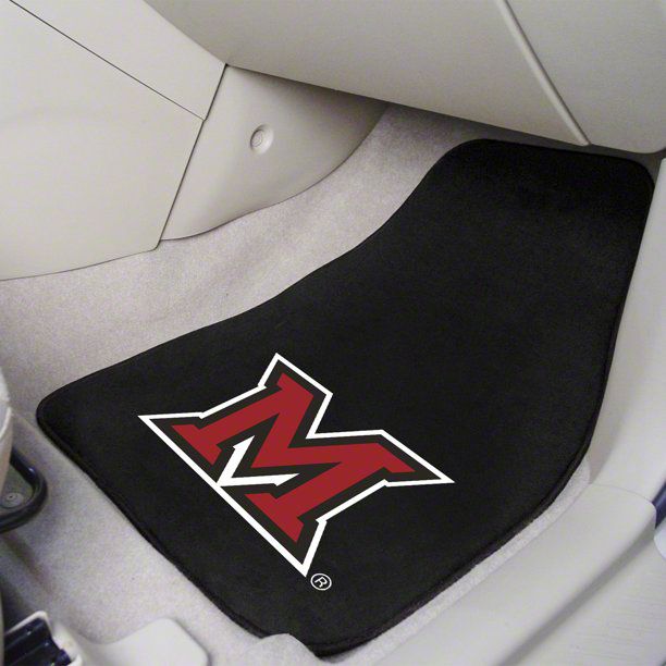 Description. Front Car Mats; 2-Pc Carpet Car Mat Set; Miami University (Oh); 17"X27"