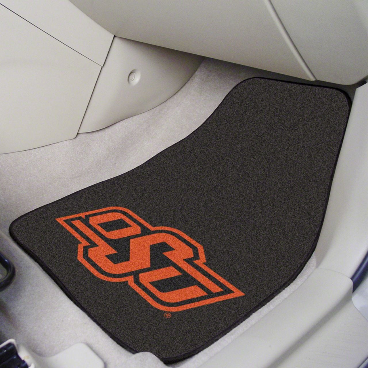 Description. Front Car Mats; 2-Pc Carpet Car Mat Set; Oklahoma State University; 17"X27"