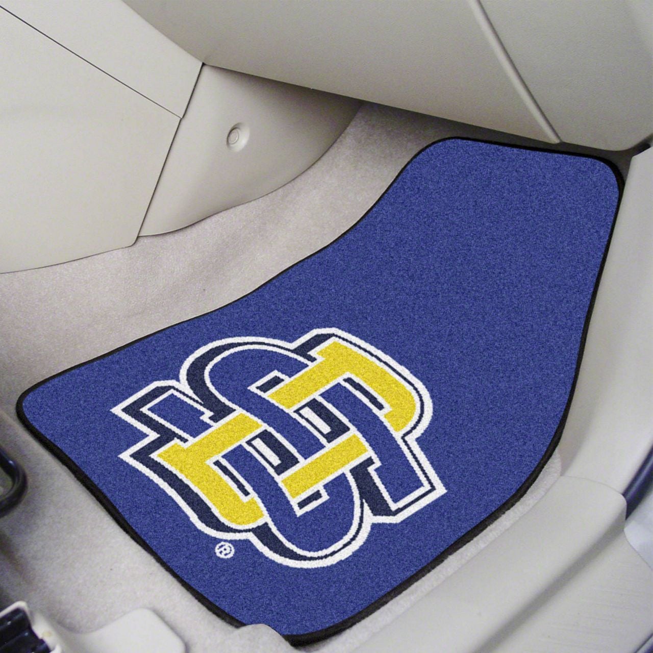 Description. Front Car Mats; 2-Pc Carpet Car Mat Set; South Dakota State University; 17"X27"
