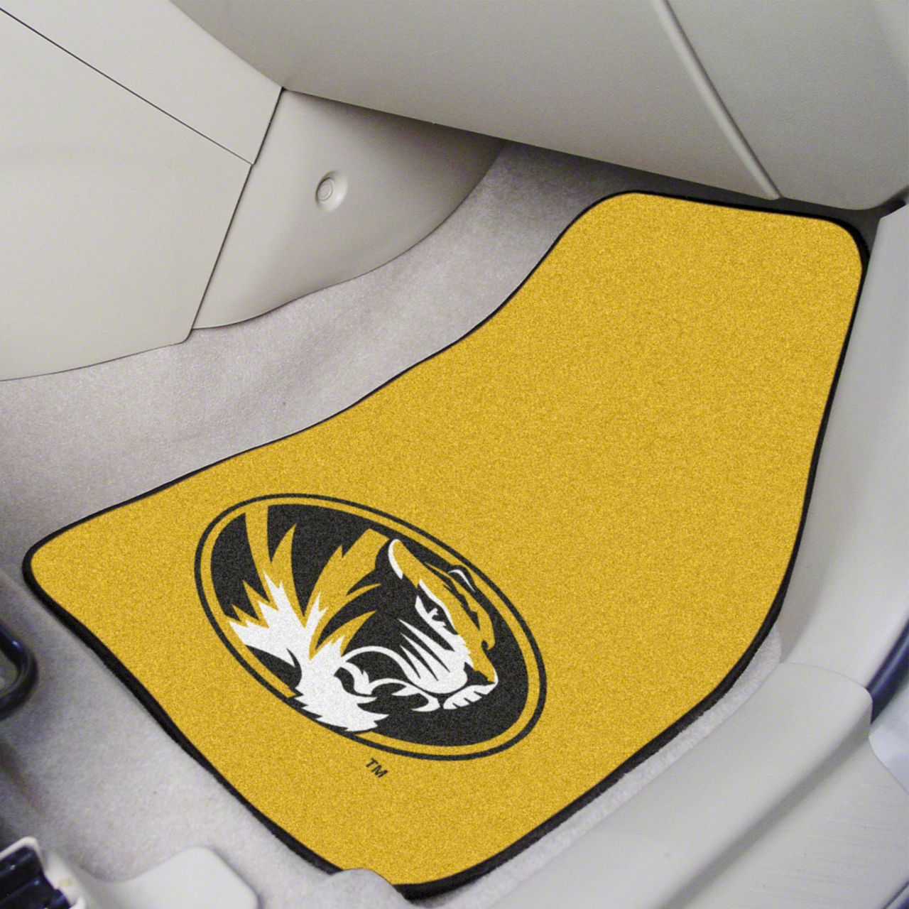 Carpet Front Floor Mats with University of Missouri Logo; Yellow (Universal; Some Adaptation May Be Required)