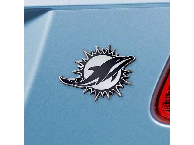 Style and Quality. Show off your love for the Miami Dolphins with this beautifully designed Emblem. The emblem features the official Dolphins logo, making it the perfect accessory for any fan. Made with high-quality chrome, it is not only durable but also adds a sleek and polished look to your vehicle. The molded 3D team logo is a standout feature that will catch the eye of fellow Fins fans without fading or deteriorating over time. You can be confident that the Miami Dolphins Emblem will remain in great condition for years to come.