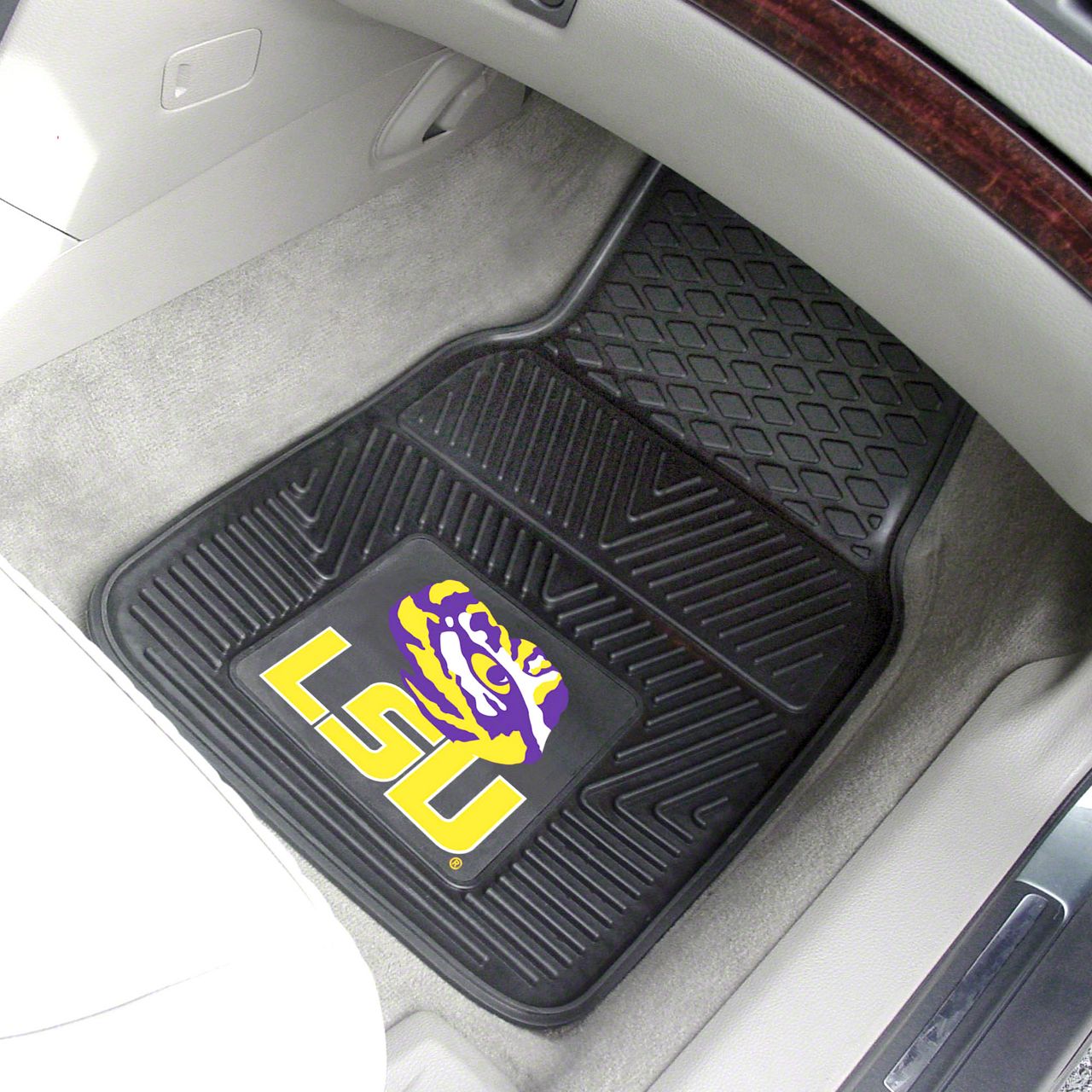 Description. Front Car Mats; 2-Pc Vinyl Car Mat Set; Louisiana State University; 17"X27"
