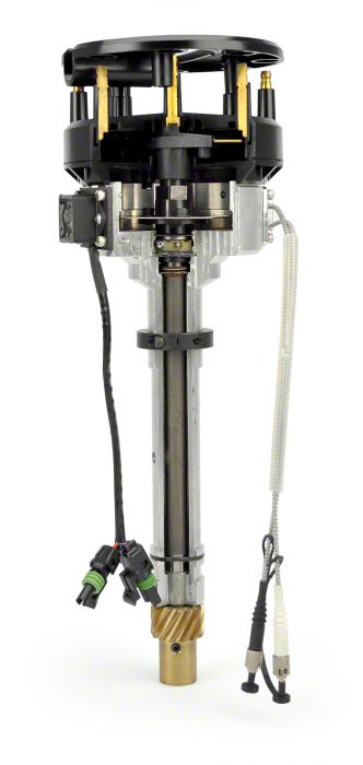 Description. When it comes to high end circle track racing where engines demand the most stable timing and reliable trigger signals, FAST XDi Pro Race Distributors are the only choice. These distributors are engineered from the inside-out to deliver the precise control and superspeedway endurance race teams require. For the most reliable and accurate trigger signal, we incorporated dual optical trigger pickups. The signal from these optical pickups is then synthesized into a common magnetic trigger signal that can be used with most racing ignitions such as the E6 series. A stainless steel trigger wheel is incorporated which also allows for modifications so a custom cylinder-to-cylinder timing order could be created. The wiring is routed into Weatherpak connectors that will plug into common wiring harnesses for sealed and locked connection. For high RPM endurance, the stainless steel distributor shaft rides in a ball bearing guide with a double lip seal for advanced oil and vacuum control. Each distributor is supplied with a bolt-down distributor cap, wire retainer and rotor. A FAST E6 race series ignition control is required. Distributor gear is NOT supplied.
