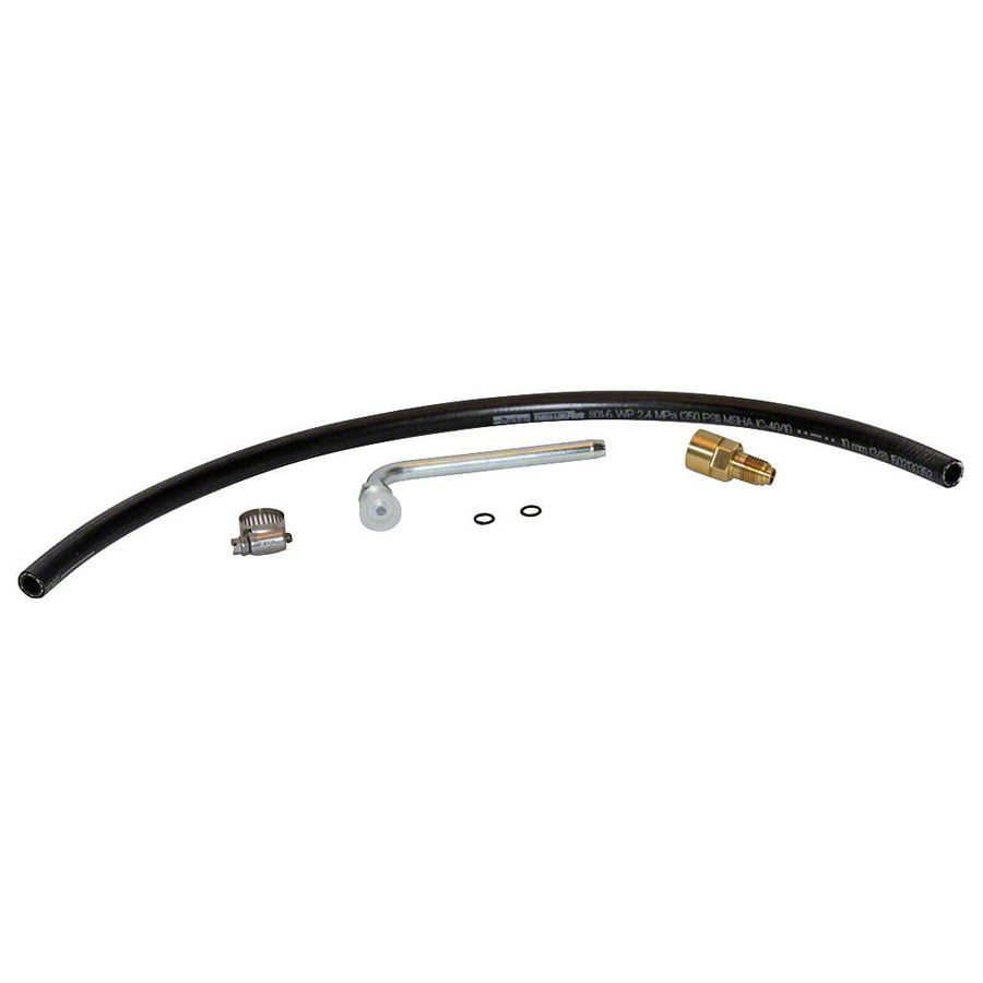 Construction and Appearance. The kit features premium rubber hoses with a 3/8-inch inner diameter for durability and flexibility. It includes precision machined fittings made to specific thread standards for secure connections, complemented by a band clamp for hose retention and O-rings to ensure leak-free seals. The components have corrosion-resistant finishes appropriate for automotive use.