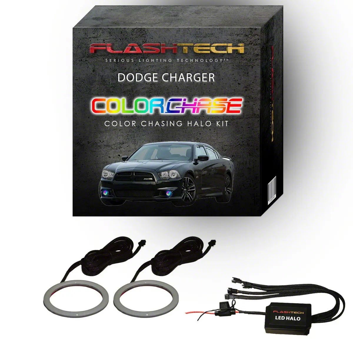 Custom Lighting Upgrade. The Flashtech ColorChase LED Halo Fog Light Kit is designed to bring cutting-edge RGB lighting technology to your Dodge Charger. With advanced ColorChase features, this kit offers both static and dynamic lighting patterns controllable via a mobile app. It's a functional and stylish upgrade that enhances your fog light visibility while transforming your front-end aesthetic.