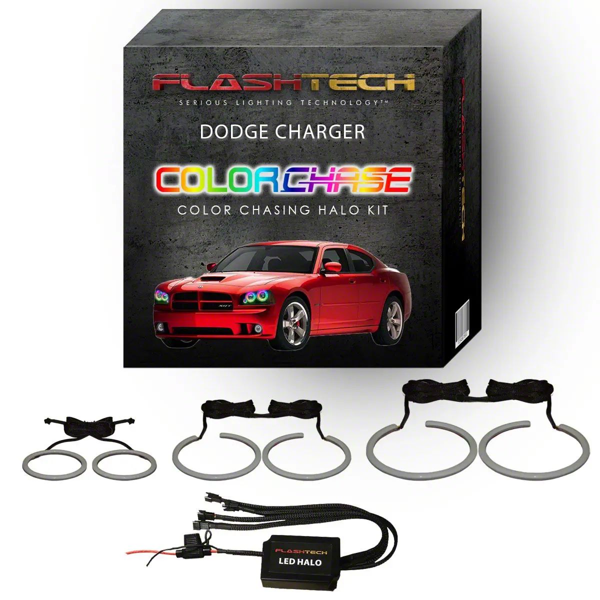 Advanced Lighting Control. The Flashtech ColorChase LED Halo Headlight Kit provides a dynamic and customizable lighting solution designed to elevate the appearance and visibility of the Dodge Charger. This kit features vibrant LED halos with multi-color options and moving light patterns easily controlled via a smartphone app, delivering an unmatched lighting experience that enhances vehicle aesthetics and presence on the road.
