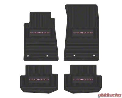 Application. This Floor Mats set fits 2010-2015 Chevrolet Camaro Models. Designed specifically for front and rear use, it provides a perfect blend of form and function—enhancing both protection and interior aesthetics with a Camaro-branded custom fit.