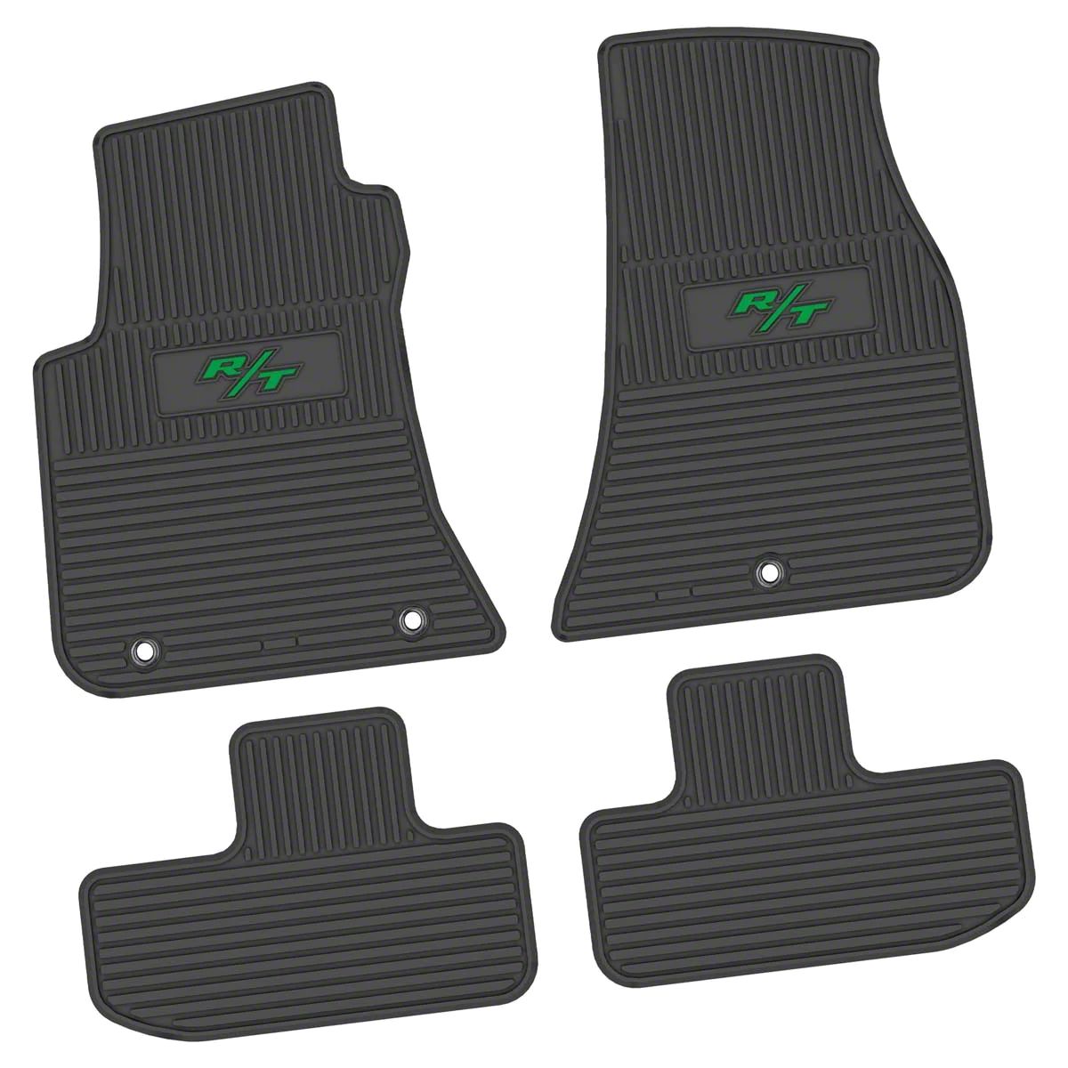 Application. The FLEXTREAD Factory Floorpan Fit Custom Vintage Scene Front and Rear Floor Mats with Green 2008 R/T Insert; Black fits all 2011-2023 RWD Challenger models.