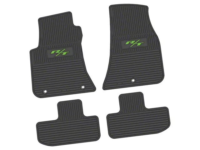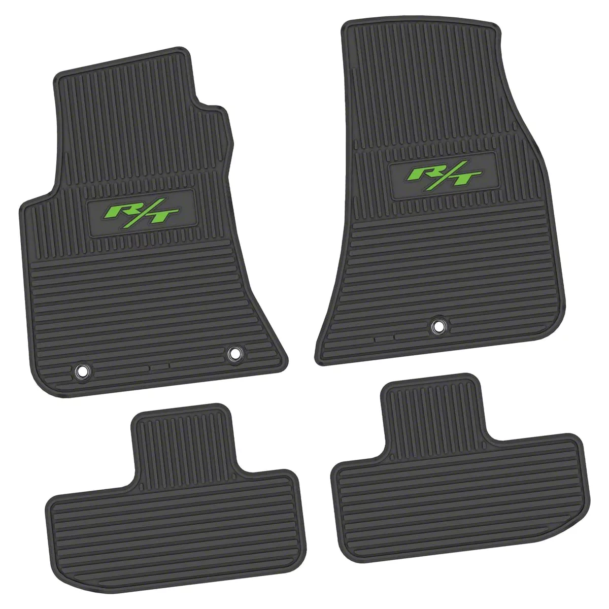 Construction and Appearance. Made to fit the factory floorpan perfectly, these mats ensure comprehensive coverage and protection. The black color and lime 2015 R/T insert enhance the overall aesthetic of your vehicle's interior, while the durable construction helps protect against dirt, debris, and wear.
