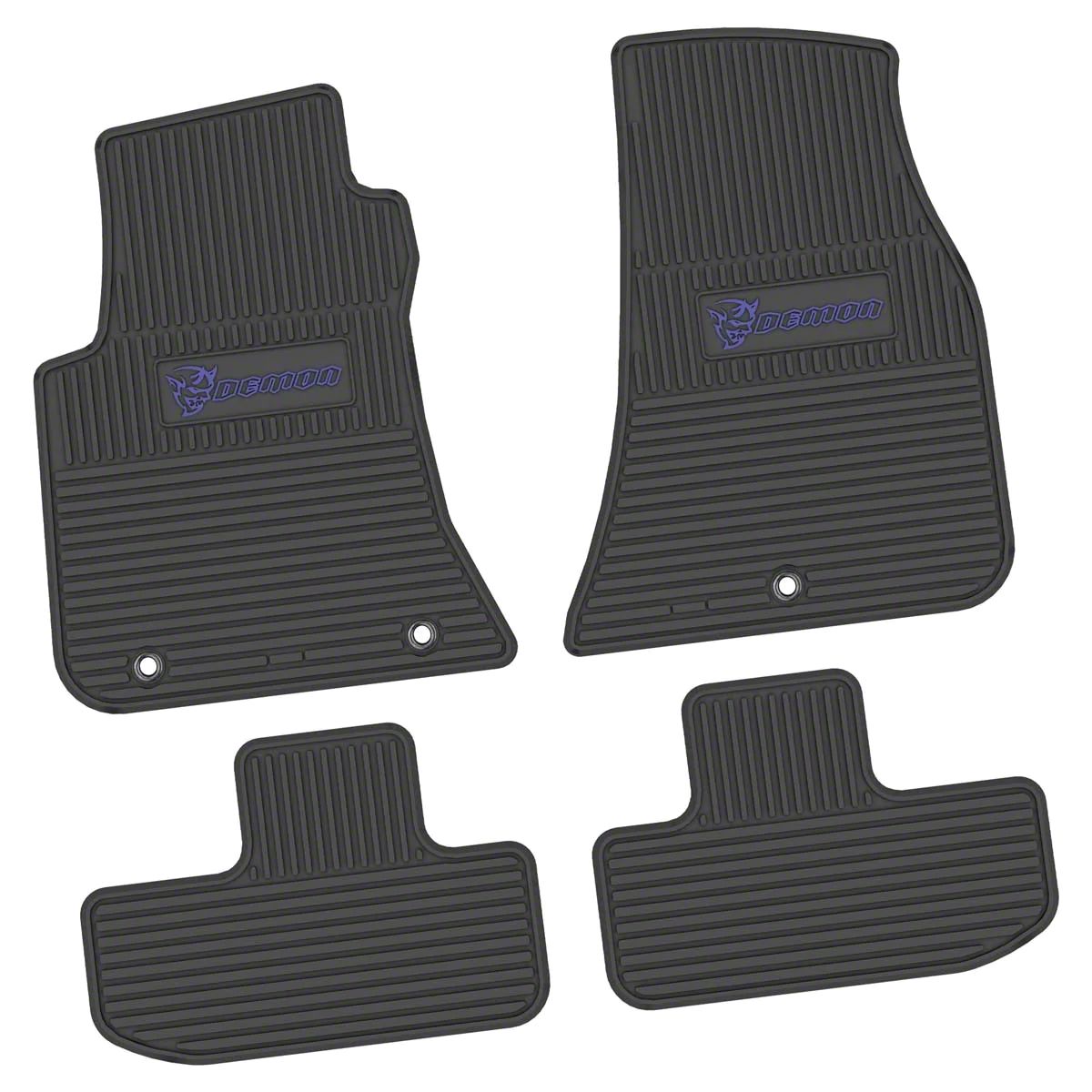 Application. The Factory Floorpan Fit Custom Vintage Scene Front and Rear Floor Mats with Purple Demon Insert fit 2011-2023 RWD Challenger models.