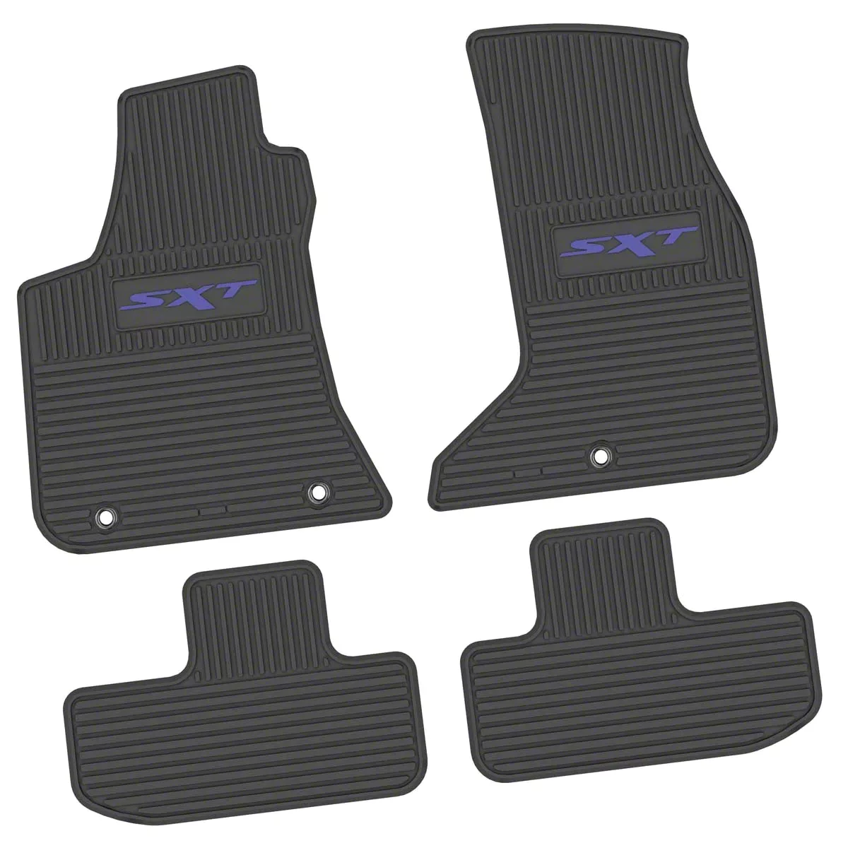 Application. This FLEXTREAD Factory Floorpan Fit Custom Vintage Scene Front and Rear Floor Mats with Purple SXT Insert fits 2017-2023 AWD Dodge Challenger models.