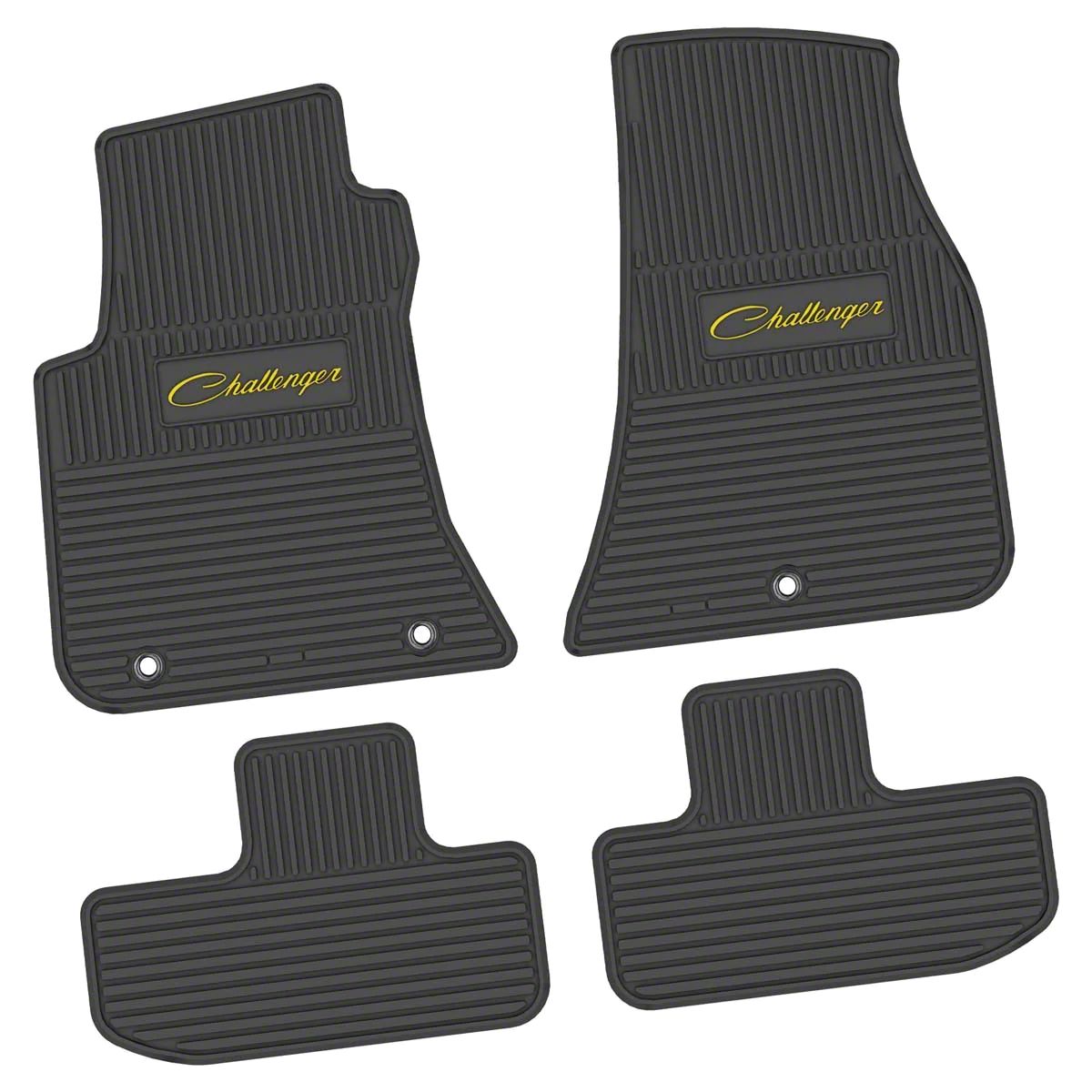 Protective. Made for the RWD Dodge Challenger, these FLEXTREAD Floorpan Vintage Scene Floor Mats come in sets of 4 with a matte black finish. Ridged with deep threading, these floor mats meet FMVSS302 flammability requirements and trap dirt, liquid, and other debris to prevent it from harming your stock upholstery. These floor mats are crafted from 100% virgin PVC and are made in the USA.