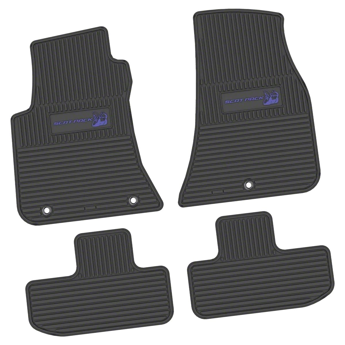 Application. These FLEXTREAD Factory Floorpan Fit Custom Vintage Scene Front and Rear Floor Mats with Purple Scat Pack Insert fit all 2011-2023 RWD Challenger Models.