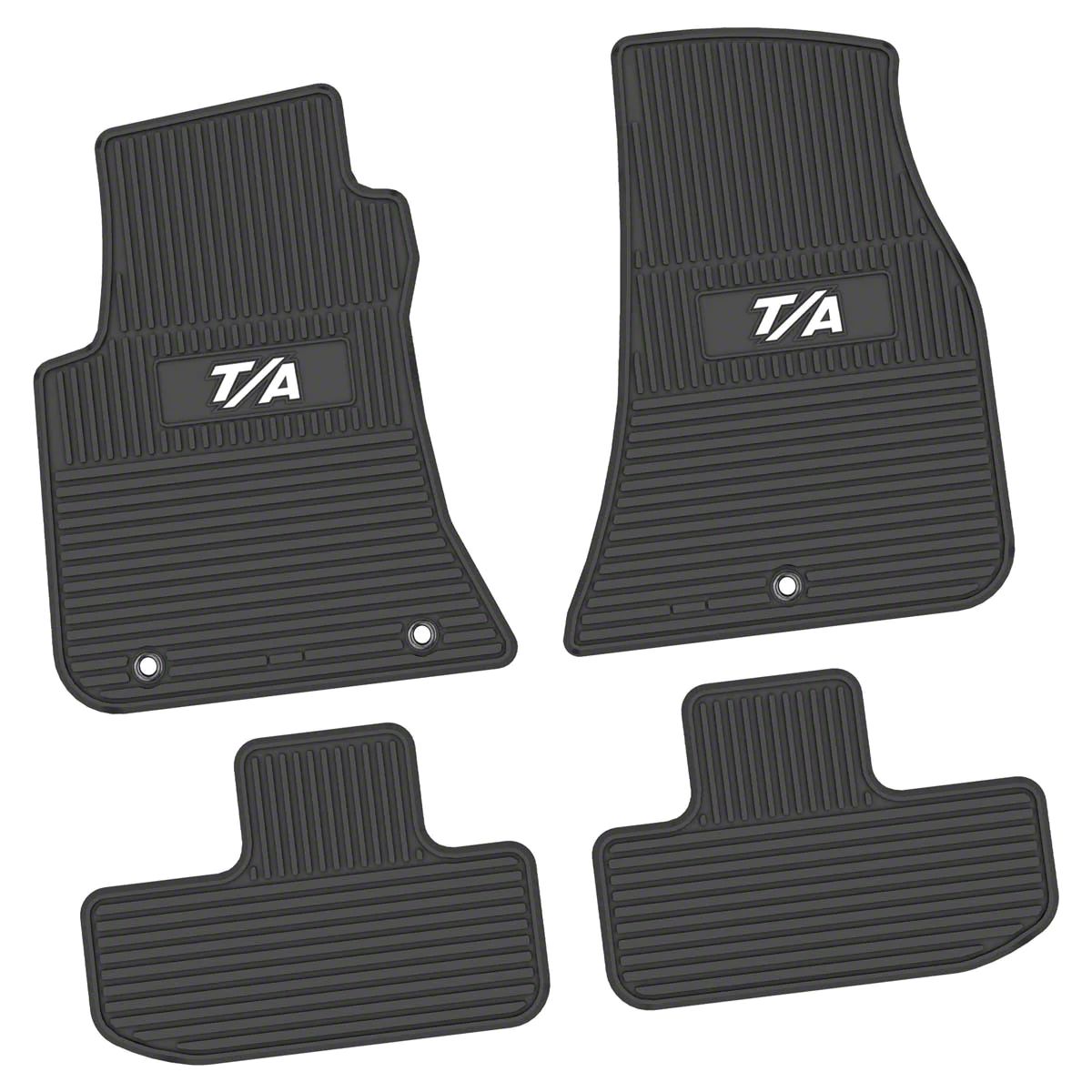 Sturdy Functional Design. The FLEXTREAD Factory Floorpan Fit Custom Vintage Scene Front and Rear Floor Mats are a stylish and functional addition to your vehicle's interior. These mats are meticulously crafted with a white T/A insert, adding a touch of vintage charm to your car's floor area. Constructed from durable black rubber, they are designed to withstand the wear and tear of daily use, ensuring long-lasting protection for your vehicle's floors. With their anti-skid backing, these mats stay securely in place, providing both safety and aesthetic appeal to your vehicle's interior.