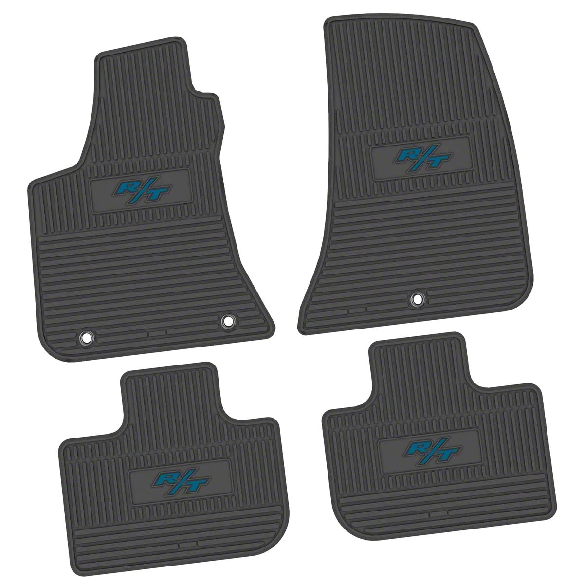 Looks, Protection, Purpose. Check out the FLEXTREAD Factory Floorpan Fit Custom Vintage Scene Front and Rear Floor Mats with a cool Dark Blue 2008 R/T Insert (Black) - a 4-piece set designed for both front and rear placement. These floor mats feature a unique Custom Vintage Scene Design that adds a touch of individuality to your vehicle's interior. Crafted with precision, they are measured and designed for exact fit, ensuring they seamlessly integrate into your car's floor space. These floor mats also maintain cleanliness of your vehicle's interior, acting as a protective barrier against dirt, mud, and debris. Say goodbye to worries about carpet and upholstery damage, as these mats offer superior protection.