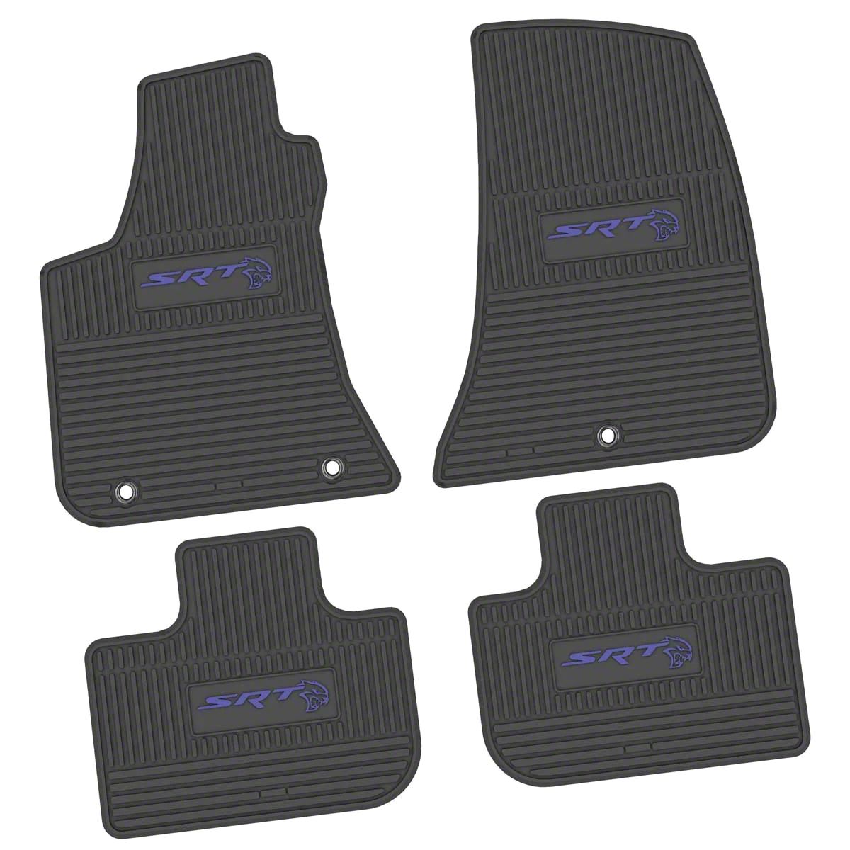 Application. This FLEXTREAD Factory Floorpan Fit Custom Vintage Scene Front and Rear Floor Mats with Purple SRT Hellcat Insert (Black) fits all 2011-2023 RWD Dodge Chargers.
