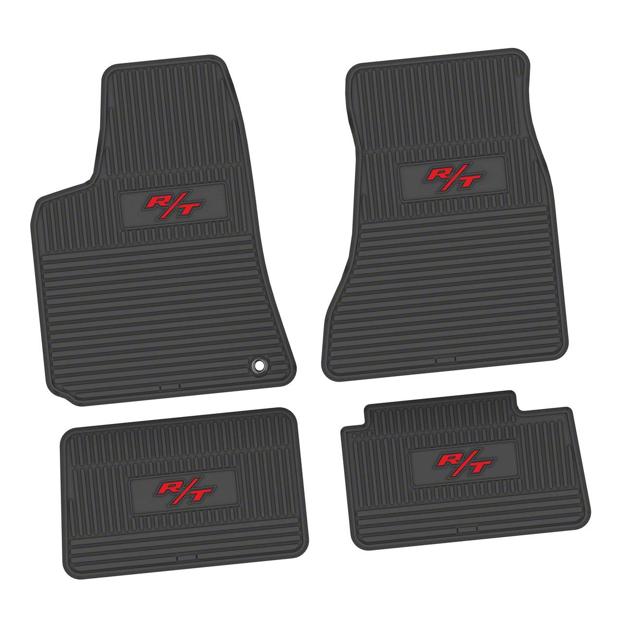 Application. This FLEXTREAD Factory Floorpan Fit Custom Vintage Scene Front and Rear Floor Mats with Red R/T Insert fits 2006-2010 RWD Dodge Charger models.