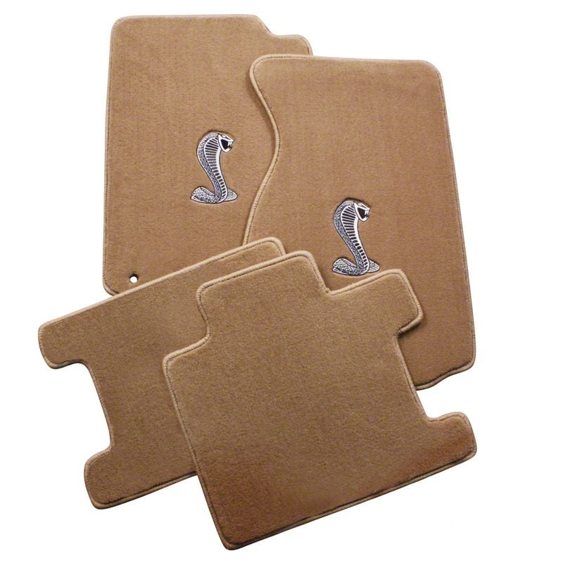 OEM Quality. These parchment floor mats are die cut from long lasting cut pile carpet for a perfect fit and are finished with a stitched trim for great looks. The Cobra logo is superbly embroidered on the front two mats for impressive styling.